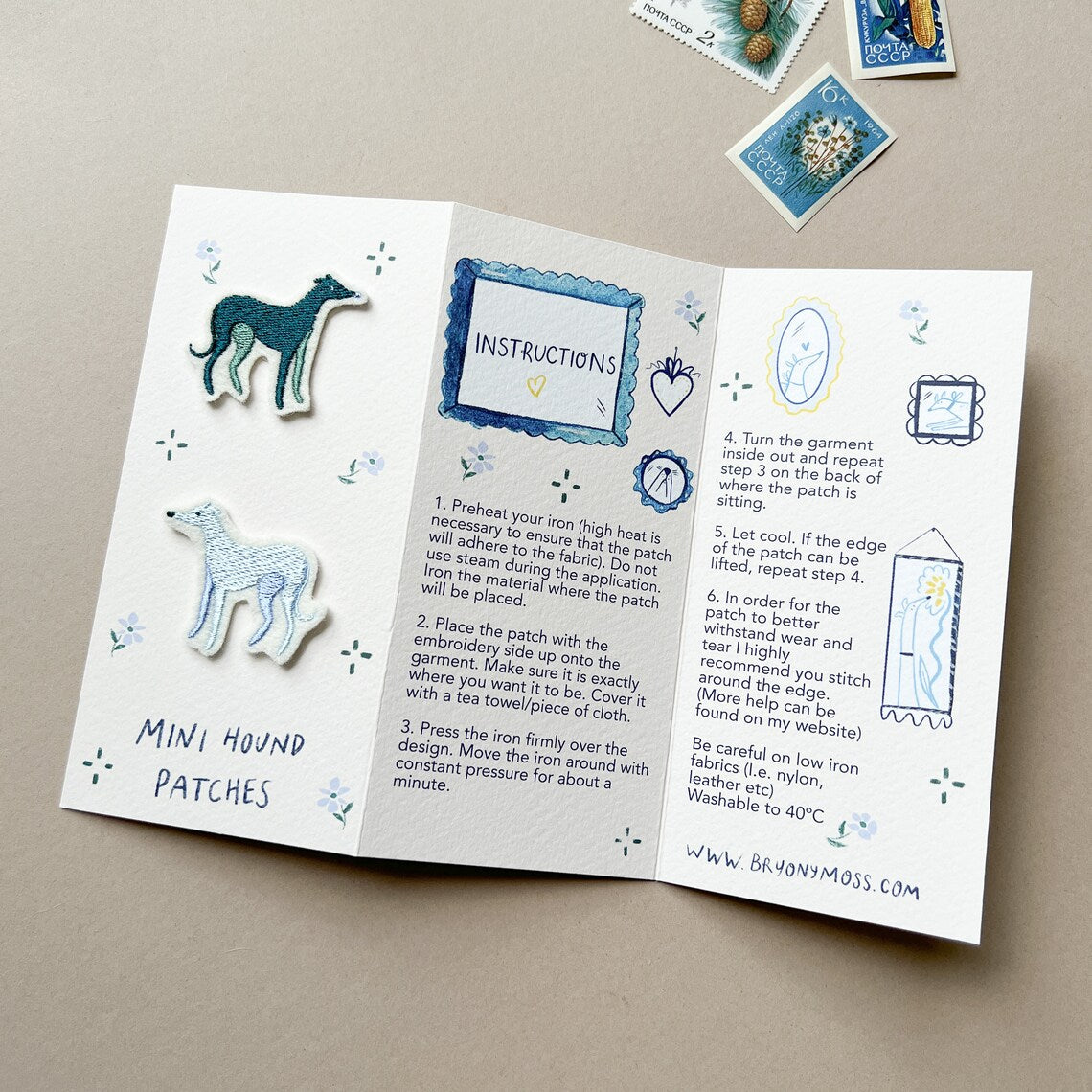 "The patches are like mini works of art, they are beautifully detailed and stitched to perfection. I am so proud that they are made in the UK by two female led micro businesses, Paper Cutts and myself. Produced in small batches by my favourite embroidery lady, Gemma Cutts." - Bryony Moss