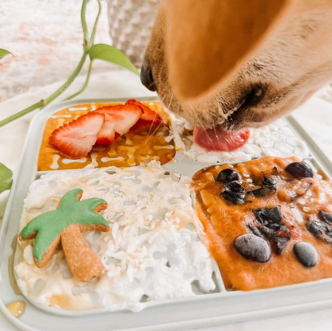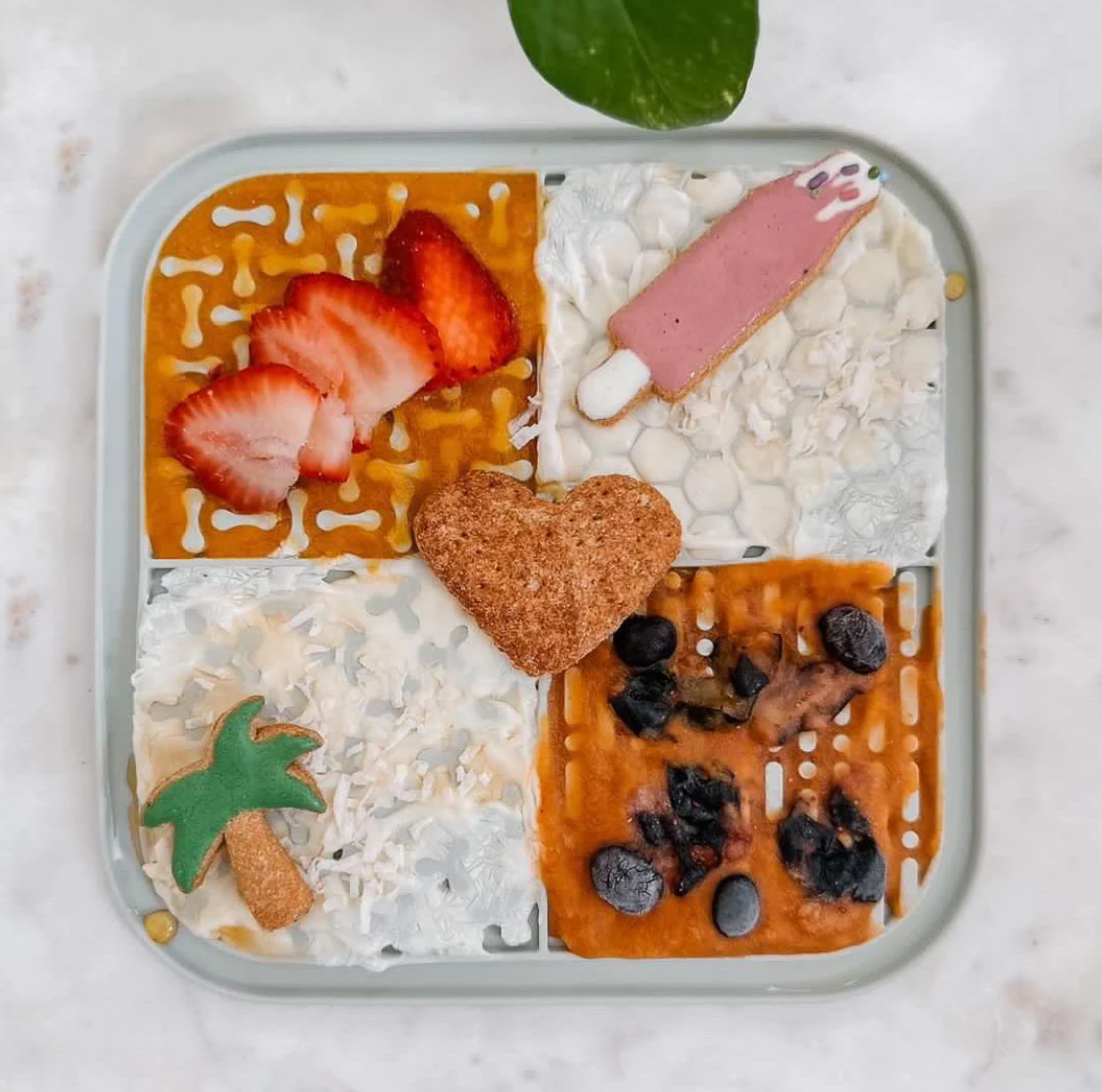 Did you know that repetitive licking is soothing for you fluffy friend, and releases calming endorphins? It's also just a fun way to switch up meal time and treats!