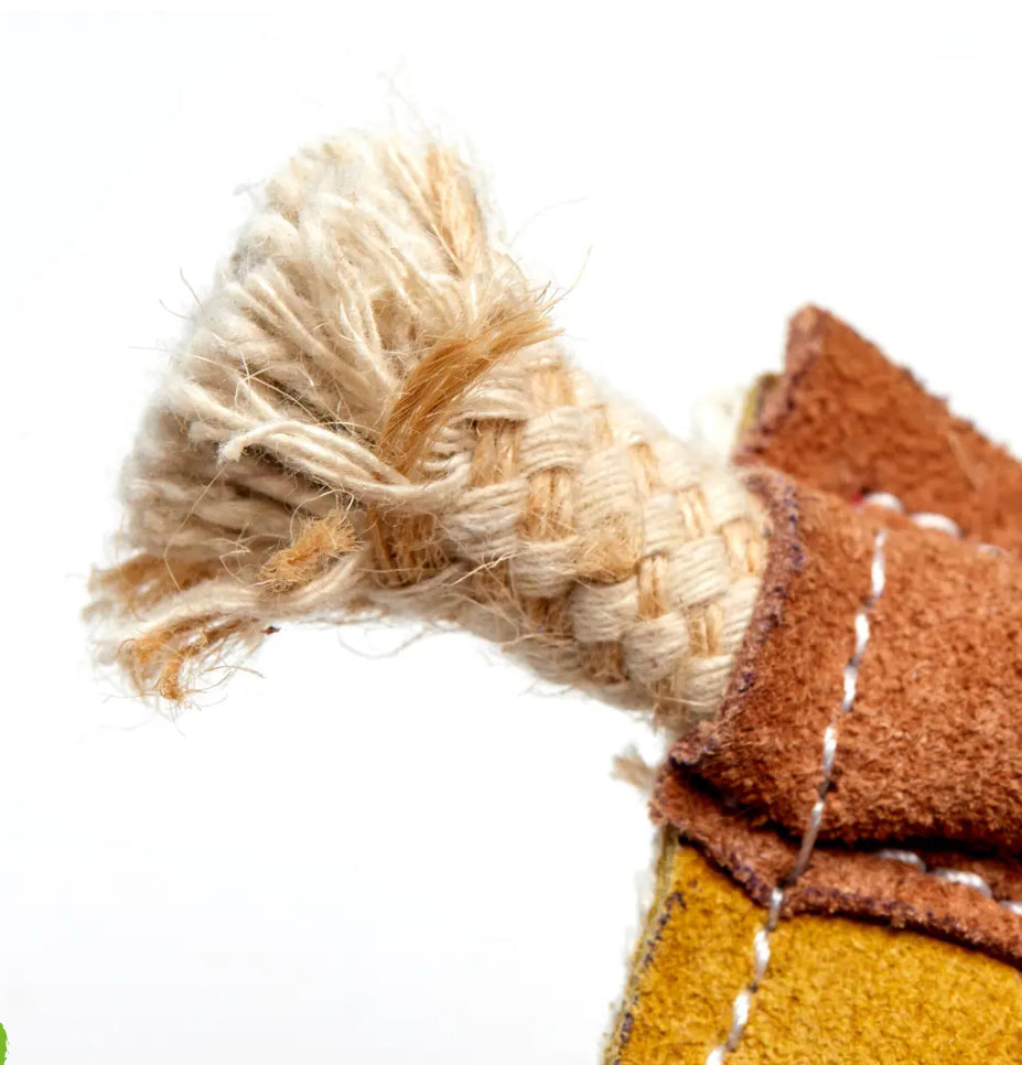 Jute is a natural, sustainable plant fibre. The suede is a by-product and ensures that this material is not wasted. Tough and long lasting, made without using any compound that would harm or be released when chewed. Jute is 100% biodegradable.