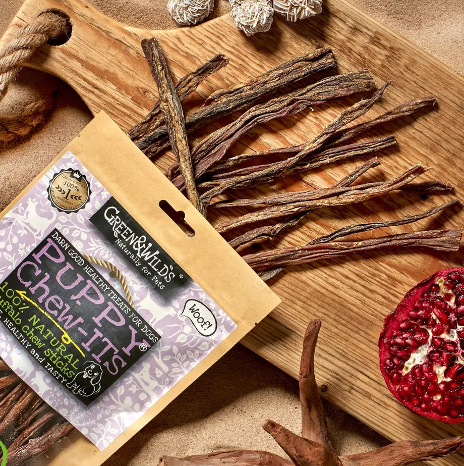 Our Puppy Chew-Its are made from 100% buffalo which is simply air dried to keep in all the goodness. These chews are softer than many others making them ideal for younger dogs. They are also ideal for seniors too. They make for a great high value reward treat and are great to satisfy your dog's urge to chew. Save your shoes with these chews!