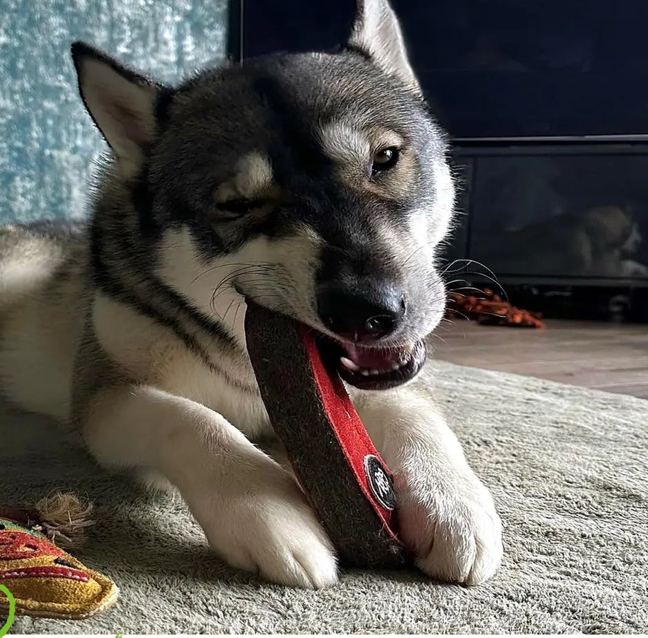 Jute is a natural, sustainable plant fibre. The suede is a by-product and ensures that this material is not wasted. Tough and long lasting, made without using any compound that would harm or be released when chewed. Jute is 100% biodegradable.