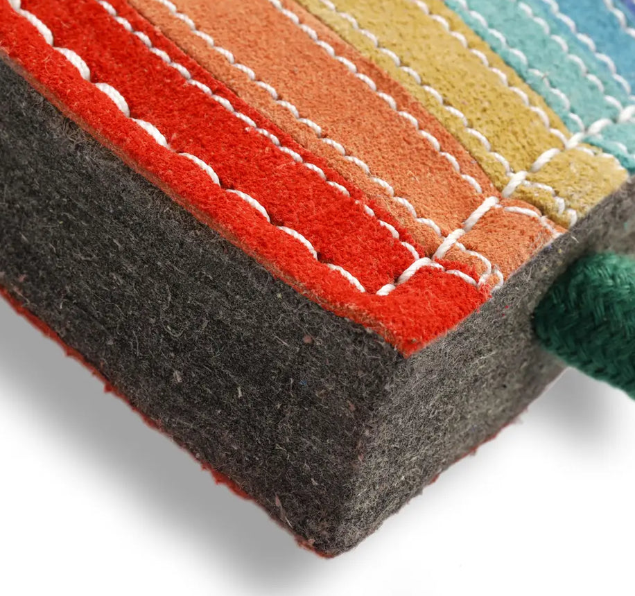Made from layers of compressed natural jute and stitched over with soft suede.