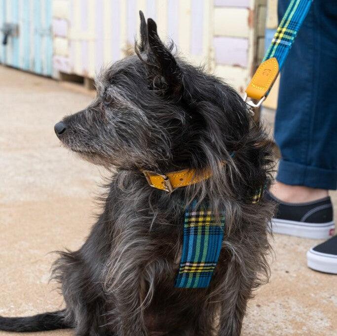 Strong and stylish, this Hiro + Wolf luxury tartan dog collar was handmade in the UK. Crafted with durability and fashion in mind, you can’t go wrong with this Shuka Blue designer dog collar. Made for daily wear, you can walk with confidence knowing your collar has reinforced stitching, secure metal hardware, and tough inner webbing. Perfect for urban strolls, beach runs, or woodland walks, your dog will look fetching no matter the occasion.