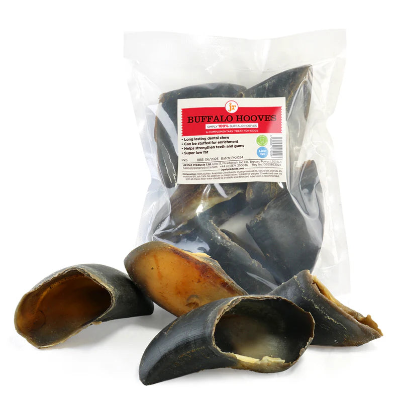 JR's Buffalo Hooves are made from 100% Buffalo Hooves. A Hypoallergenic alternative to our calf and cow hooves, these Long Lasting, Durable treats are Nature's Stuffables with a hollow section perfect for stuffing with our Pure Paté for a super Enriching Treat.