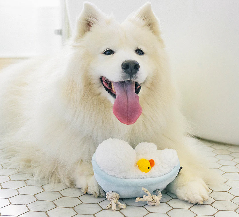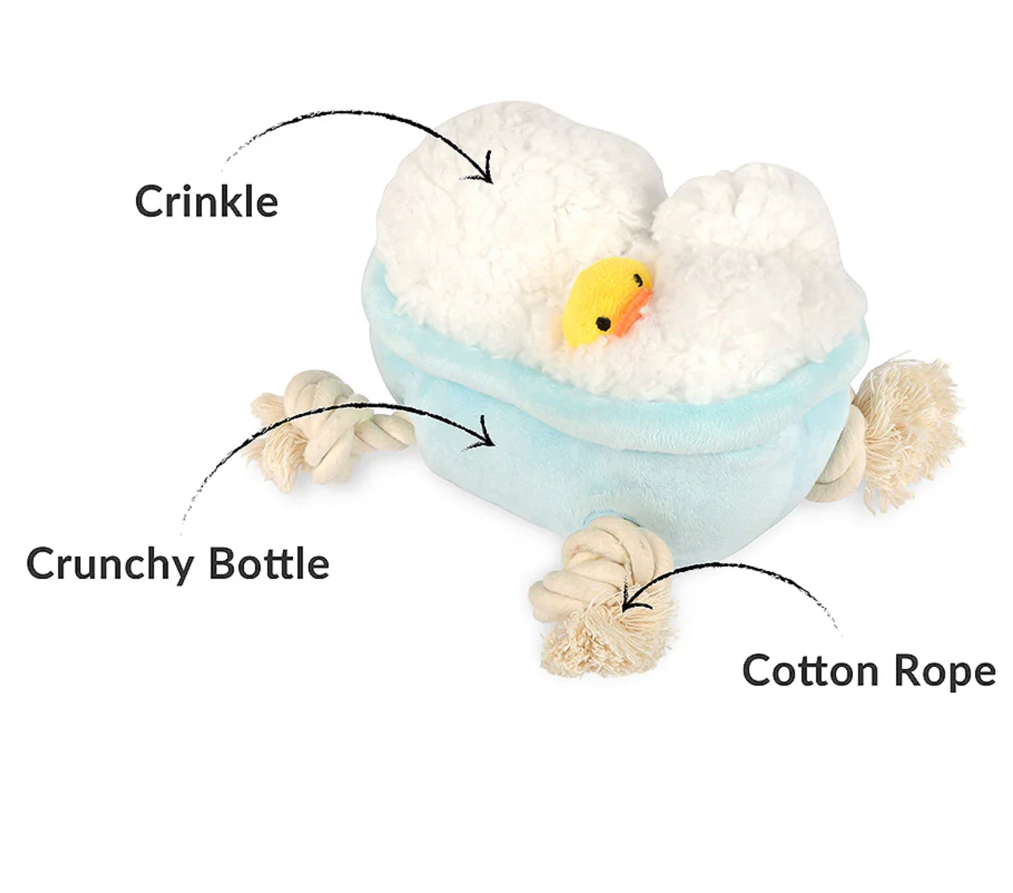 Love it or hate it, bathtime is essential! Transform this essential routine into a playful experience with P.L.A.Y.’s Splish Splash Rub-a-dub-Tub. This toy is perfect for a post-bath tug-of-war game featuring delightful crinkles and a satisfying crunchy bottle. It’s so enticing that even Bubbles the Duck couldn’t resist sneaking in!