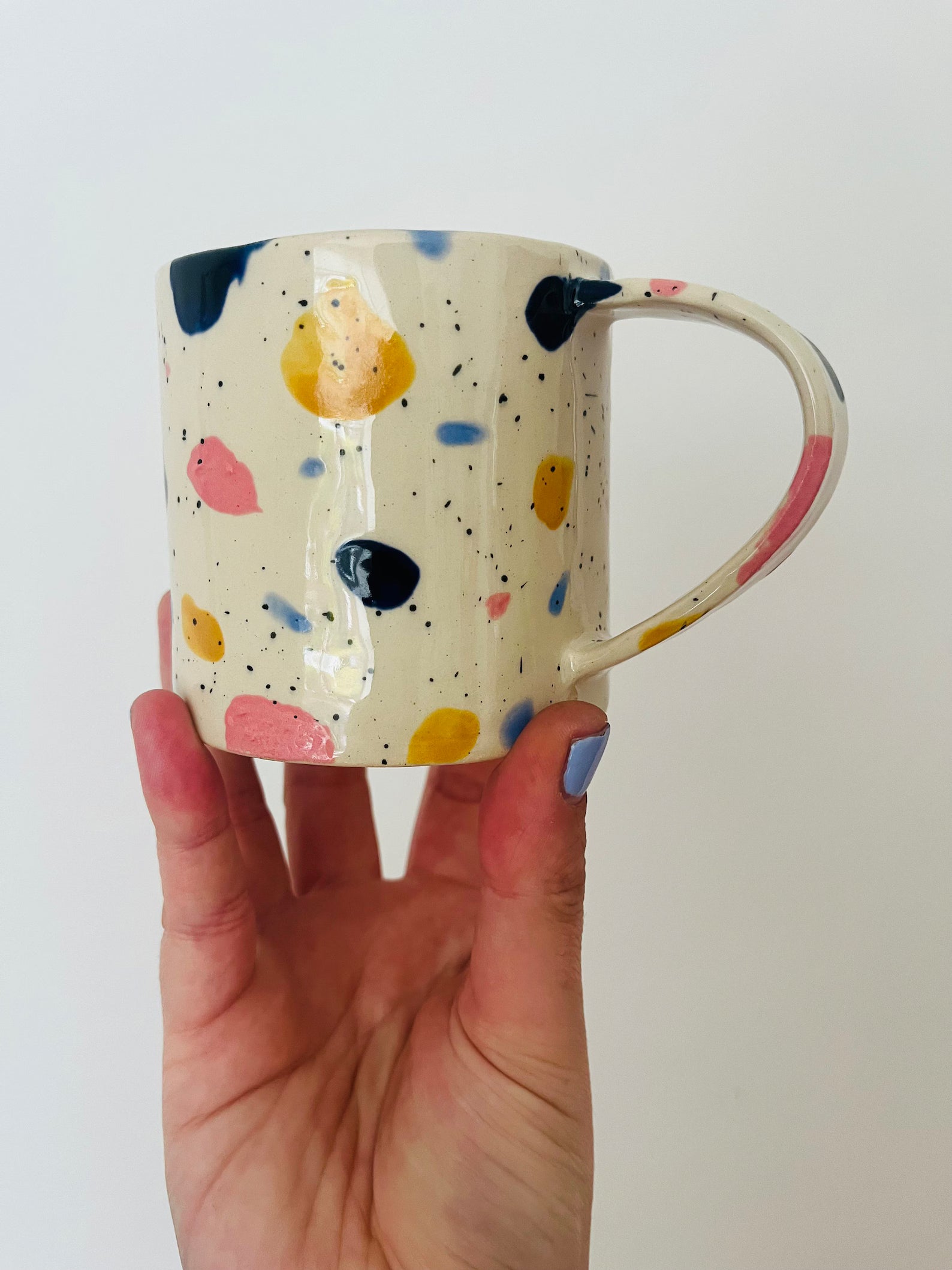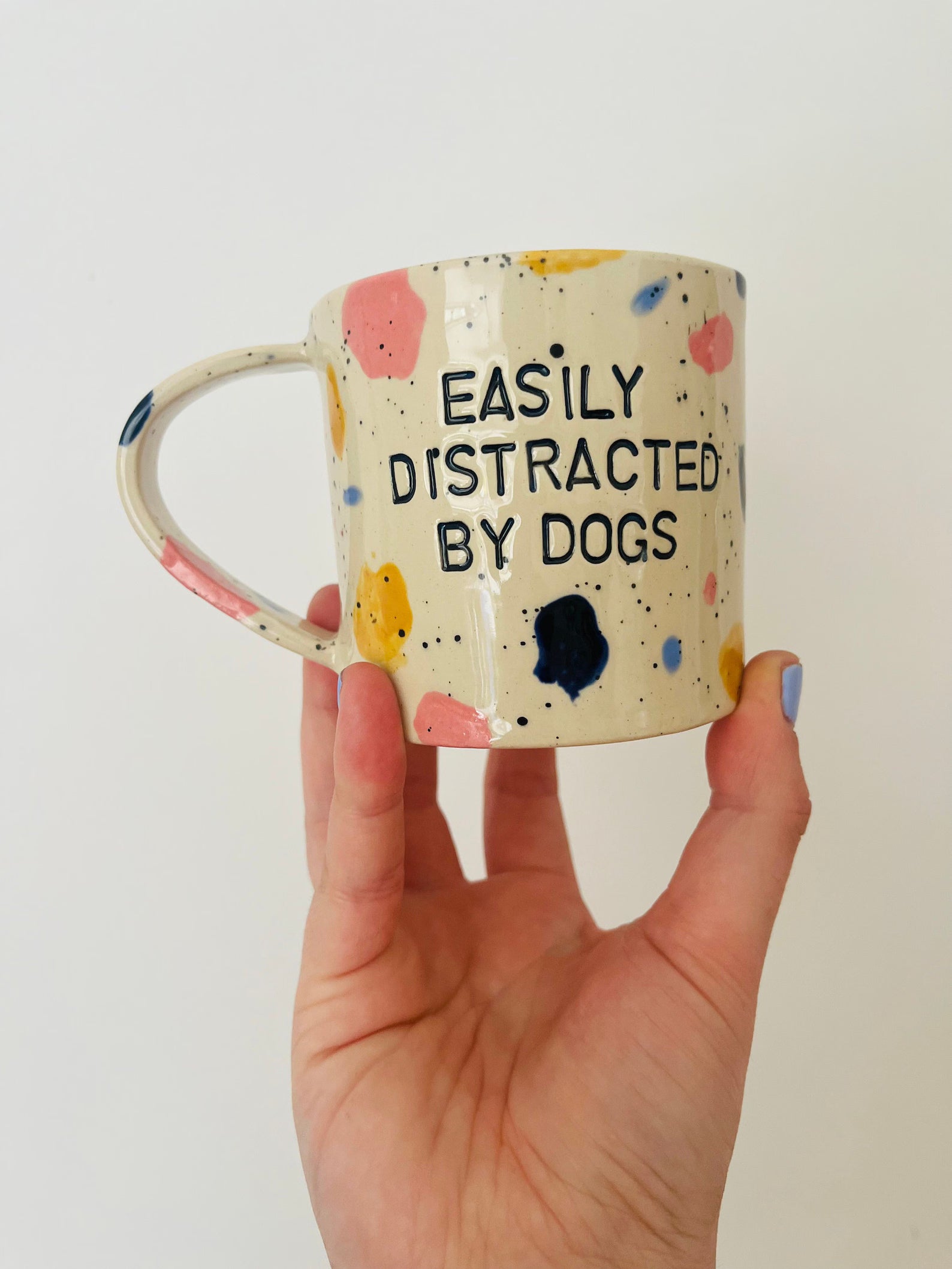Do you ever get distracted by cute dogs? Same! This mug makes the perfect gift for any dog lover—or a little treat for yourself. Hand-painted with a playful confetti pattern and stamped with the phrase “Easily Distracted by Dogs,” 🐶