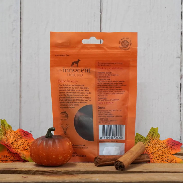 They sold out last year, so these limited edition delicious sausages made with sustainably sourced wild salmon and British venison have made a long awaited return for the Autumn months. Innocent Hound have added a hint of pumpkin and cinnamon for a tasty autumnal aroma that hounds LOVE!