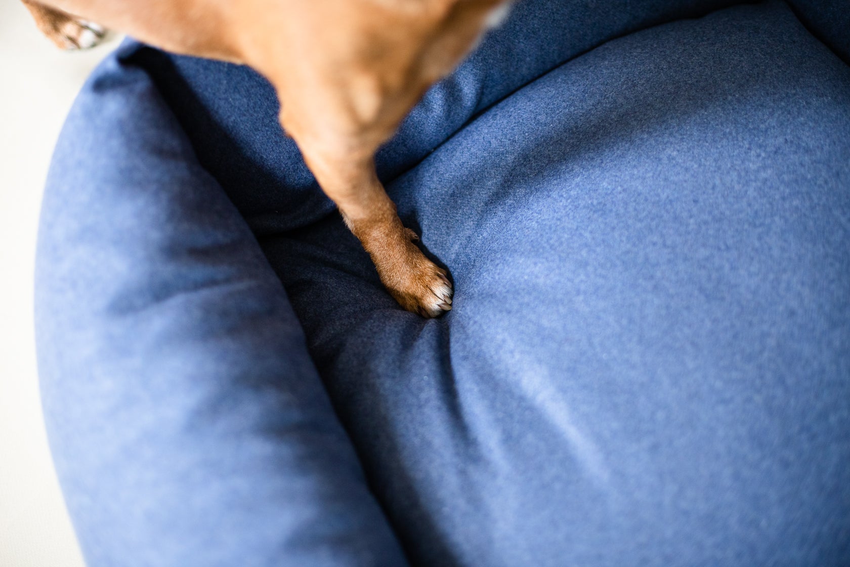 Meet Fort, a contemporary and minimal bolster bed made with a heavy wool melton fabric. The high sides create a safe place for your dog to snuggle up in as well as rest their head on. Perfect for dogs who prefer a safe place to curl up in.