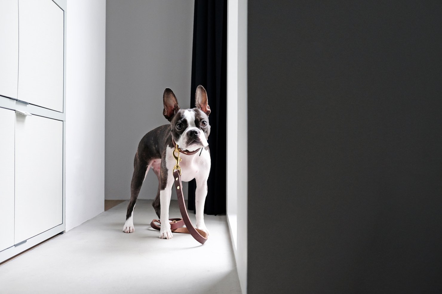 Classic and minimal lead featuring an o-ring in the handle (for easy attachment of poo bag holders, or hooking the lead cross-body while your dog is off wandering to free up your hands). The lead will with time soften and develop its own unique patina, as well as darken slightly depending on your dogs everyday use.