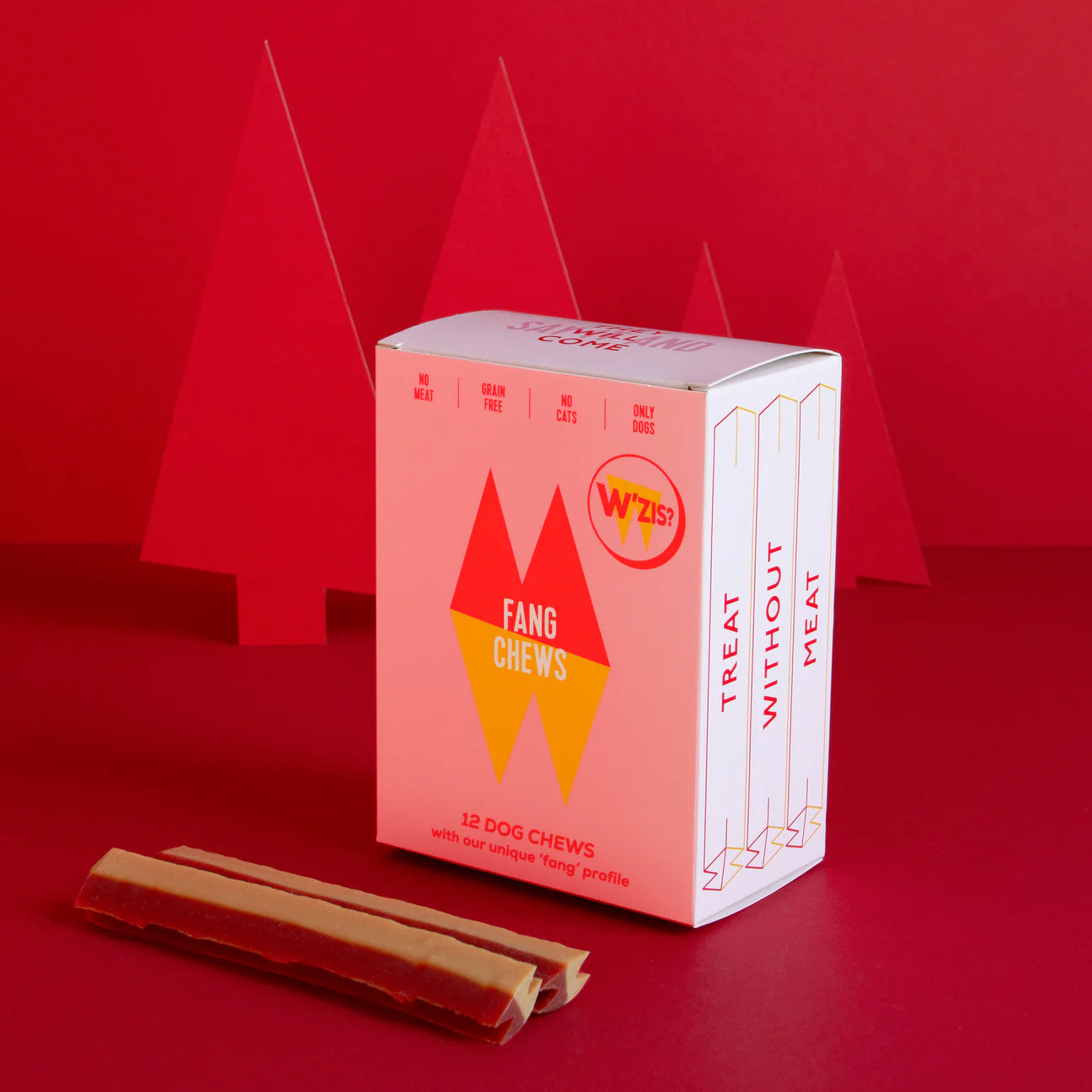 The Fang chew is specially formulated for your dog’s fangs, who’d have thought. The W’ZIS? shaped chew tickles gums and cleans teeth while bridging the gap between meals. Breath freshening ingredients enhance the face-licking experience.