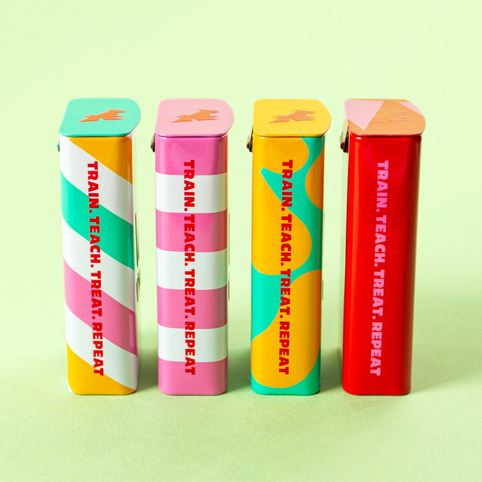 Includes one empty training treat tin. Capable of holding up to 25g of treats.