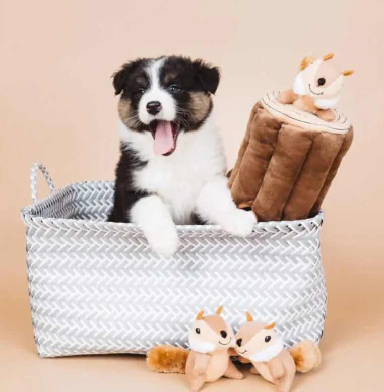 For a wildly entertaining time, put the squeaky little chipmunks inside the Zippy Burrow™ Log and watch as your pup flushes them out from their hiding place! Once your playful pup has them all out, they’ll be begging you to put them back in again and again for hours of fun! It’s the perfect interactive toy for keeping your dog busy and engaged through hide-and-seek play that prevents boredom and promotes mental stimulation! This interactive hide-and-seek toy comes with 1 log and 3 small squeaky chipmunks.